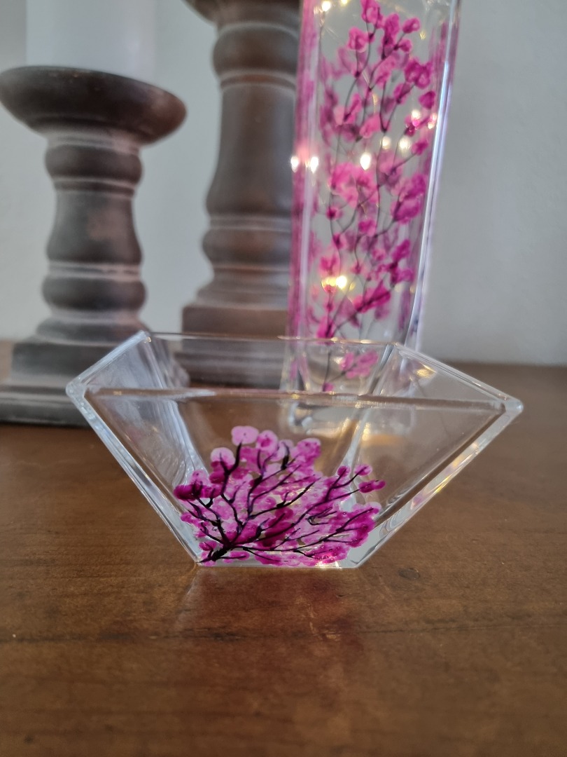 Handgeschilderde glazen schaaltjes bloesem rose - 10 x 10 x 6 cm